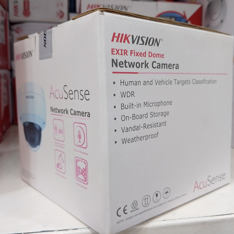La Hikvision Network Camera (EXIR Fixed Dome) es una cámara domo resistente al vandalismo con vidrio reforzado y una resolución de 4 MP. La cámara está equipada con tecnología AcuSense para una detección precisa de personas y vehículos, ofrece visión nocturna por infrarrojos de hasta 30 metros y garantiza un rendimiento fiable gracias a su clasificación IP67/IK10. Con un micrófono integrado y compresión H.265+, esta cámara es ideal para una seguridad eficaz, tanto en interiores como en exteriores.